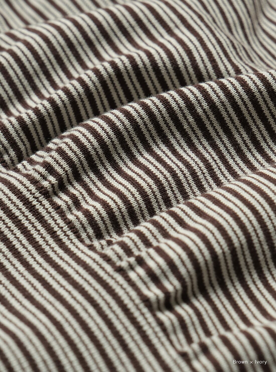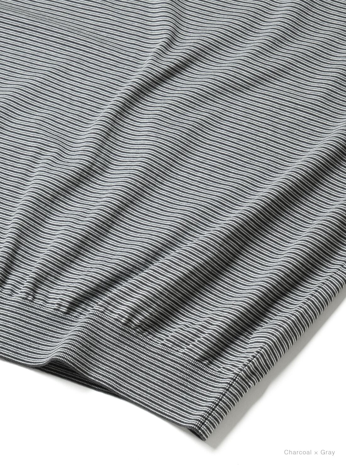 超長綿の毛羽立ちを抑えるようコンパクト紡績し、しっかりと度詰めで編んだ商品。裾はニットならではの編み続きでリブ仕様に仕上げ、自然なブラウジングが生まれるシルエットに。立体感のあるフォルムが魅力で、ニットブランドならではのこだわりが感じられるニットTシャツです。袖丈は長めのデザイン。