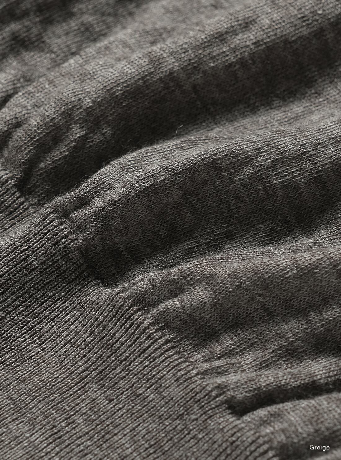 ロイヤルラミーを極細番手に紡績し、ハイゲージで編み立てました。ラミー特有の上品な光沢感があり、ラミー独特の凸凹感が魅力。清涼感があり肌離れが良い素材で、透け感のある商品。