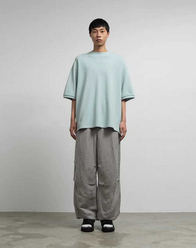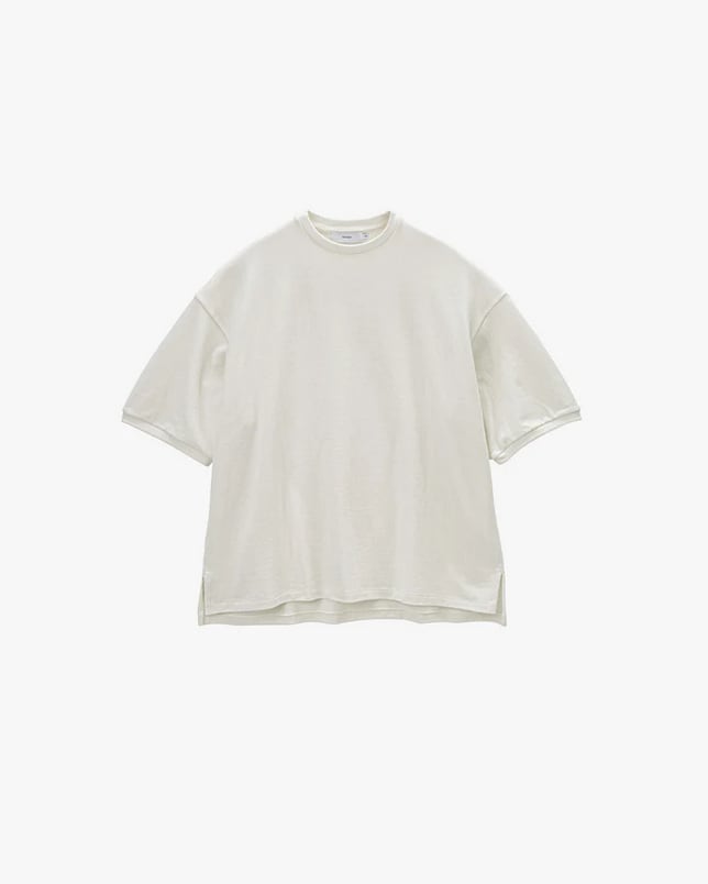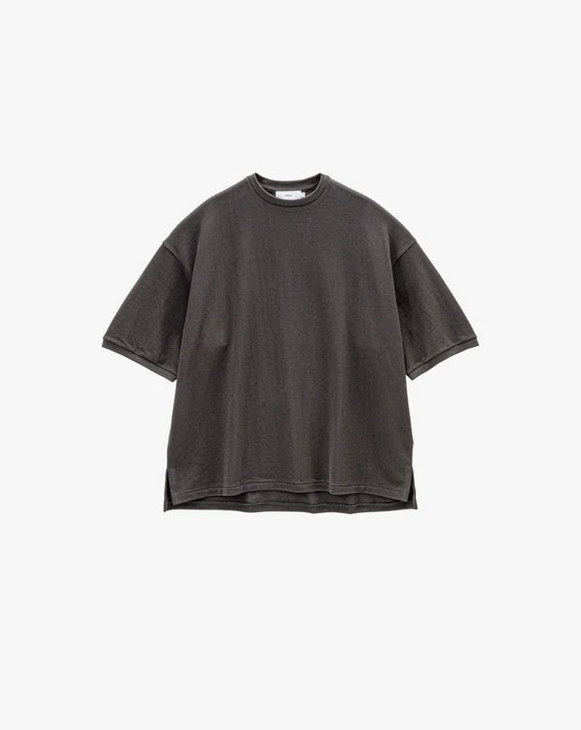 ゆったりとしたリラックスシルエットのショートスリーブクルーネックTシャツ。グラフペーパー定番のパックTと同素材のコットンで吊り編みした鹿の子を使用。膨らみのあるしっかり立った鹿の子目と、柔らかさを備えつつ高いキックバック性を実現した素材感が特徴。