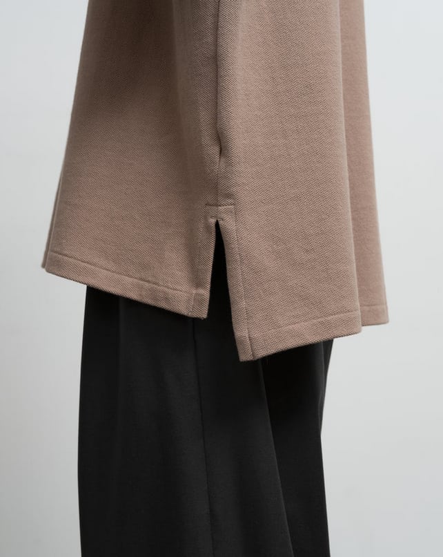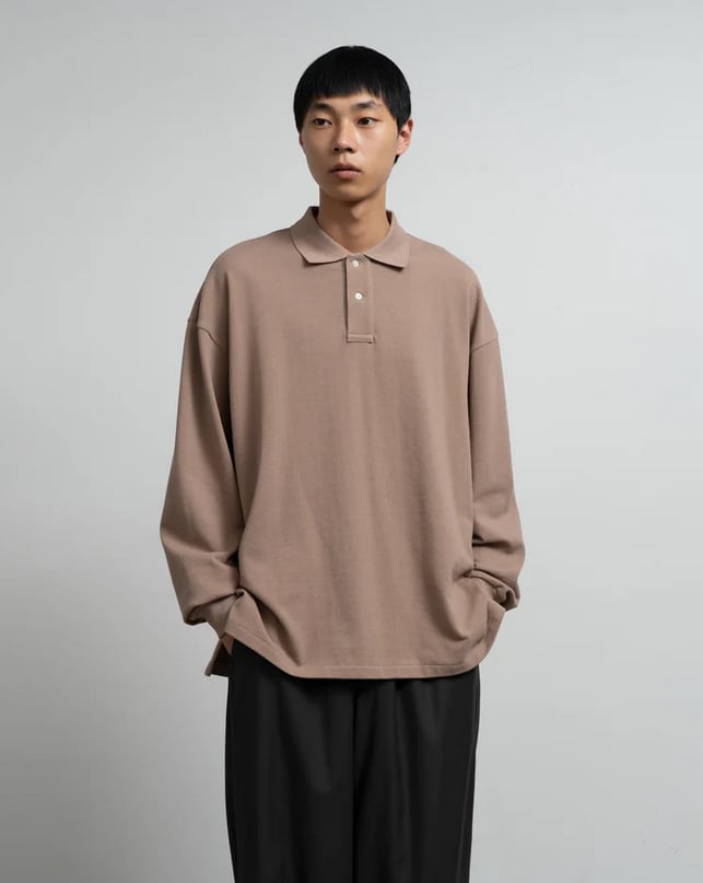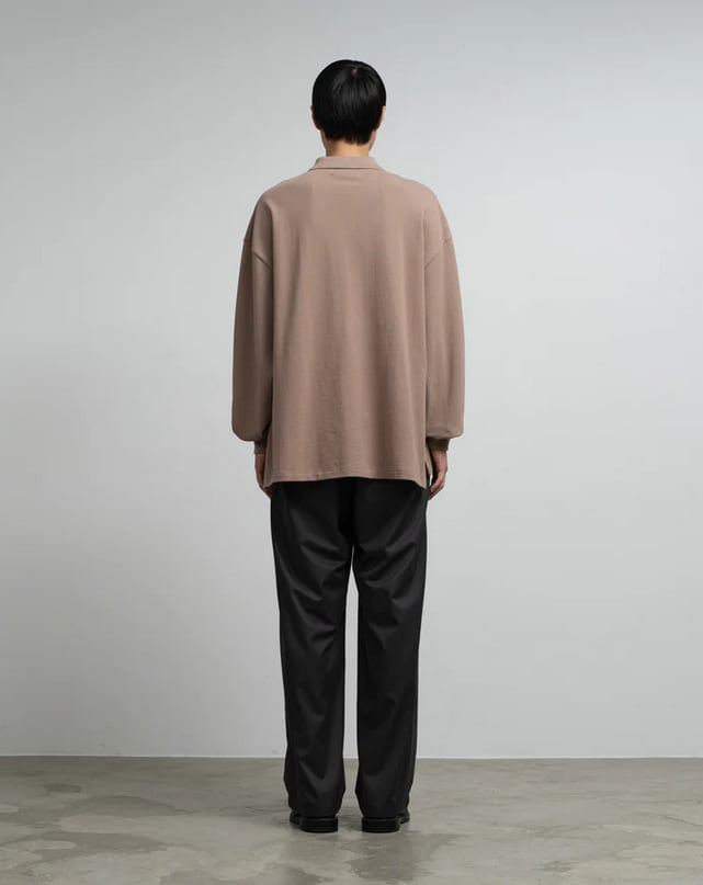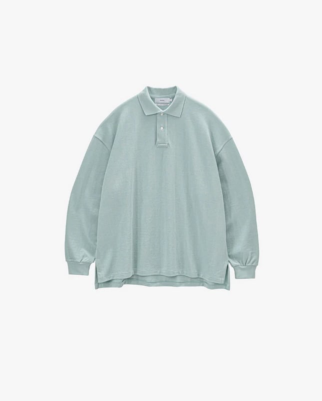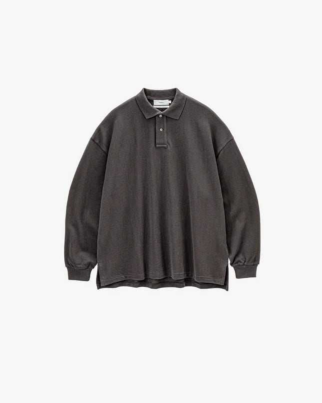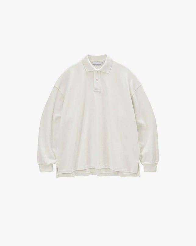 ゆったりとしたリラックスシルエットのロングスリーブポロ。グラフペーパー定番のパックTシャツと同素材のコットンで吊り編みした鹿の子を使用。膨らみのあるしっかり立った鹿の子目と、柔らかさを備えつつ高いキックバック性を実現した素材感が特徴。